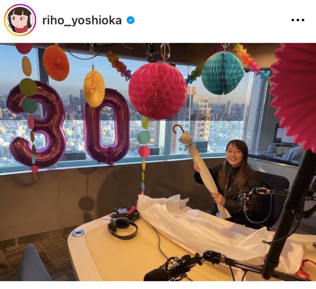 吉岡は、「ちょっと早めにラジオメンバーがお祝いしてくれました(中略)欲しかった”ひがしちか”さんの傘を貰い大はしゃぎしました。」とつづり、プレゼントを手に笑顔を見せるショットをアップ。